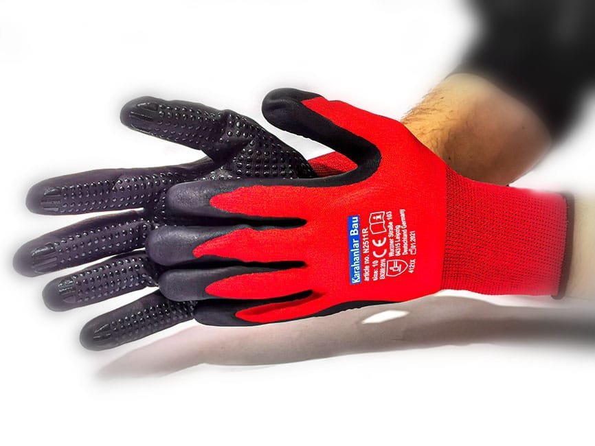Karahanlar Large Red Ultra-Thin Lightweight Working Gloves with Grip, 12 Pairs Bulk Pack Construction Gloves with Polyurethane Coating, Safety Gloves for Light Duty Work